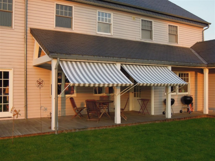 Ce store extérieur à bras droits est plus économique qu'un store banne, qui sera privilégié si les bras droits gênent le passage, par exemple sur un balcon.